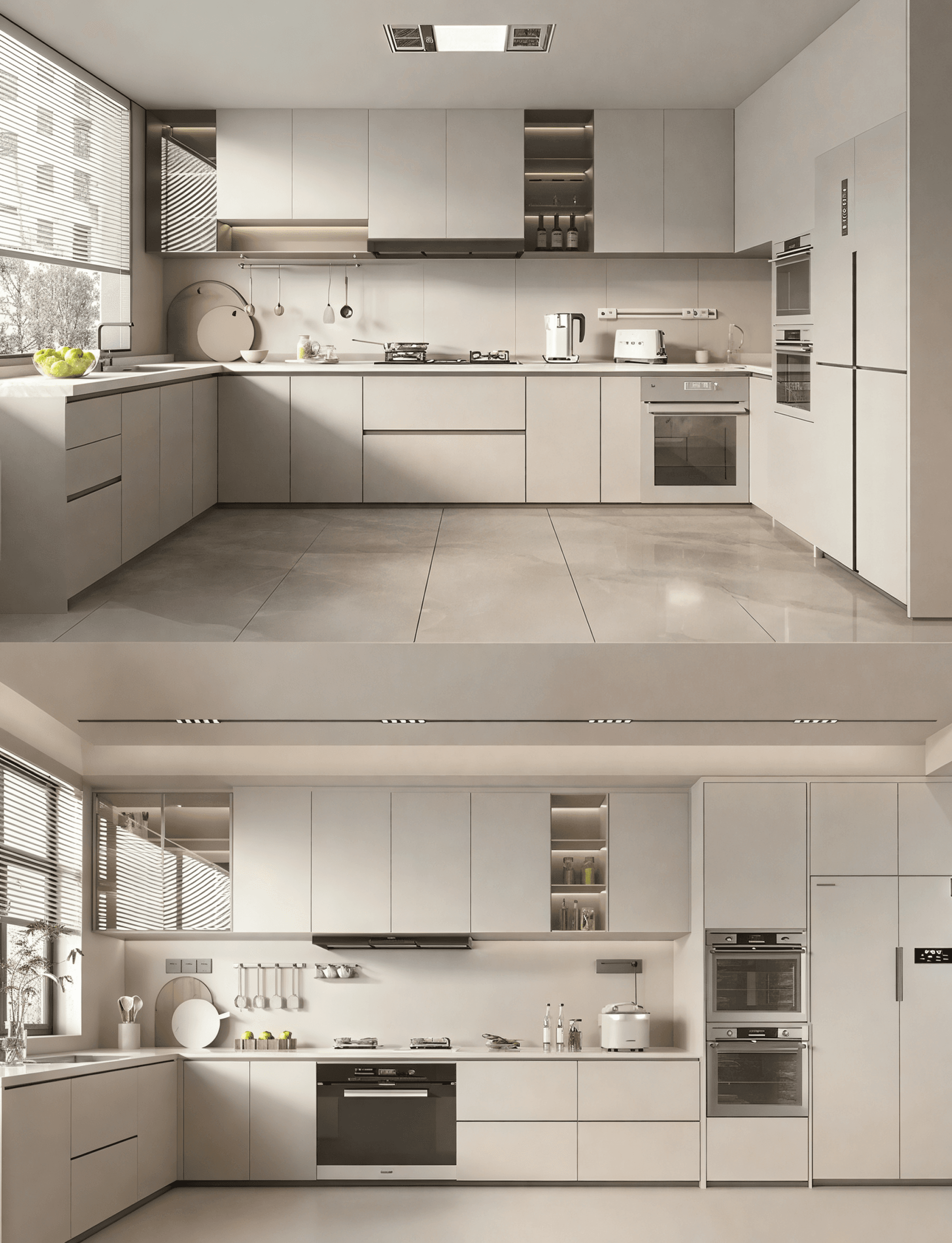 Color impacts perception of space, cleanliness, and warmth. Kitchens benefit from controlled palettes that support long-term use rather than short-term trends.