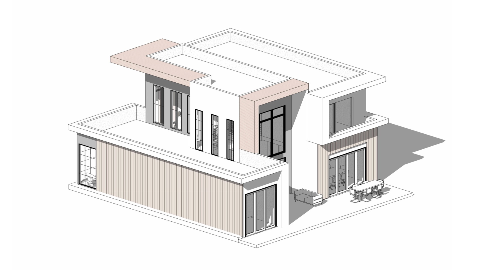Altadena rebuild project featuring a 3,000 SF modern residence with a 1,200 SF ADU. Designed for contemporary living with seamless indoor–outdoor connections.